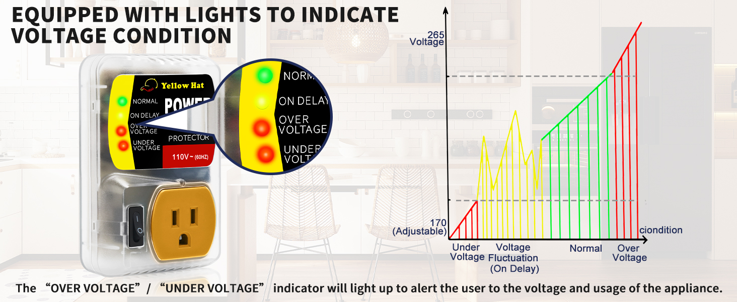 When the voltage exceeds safe levels, the "overvoltage" or "undervoltage" indicator light will illuminate, clearly signaling potential risks to your connected devices.