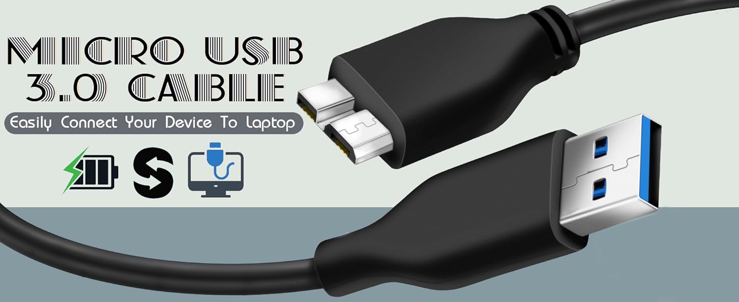 High performance Micro USB 3.0 cable connects a portable external USB 3.0 hard drive to a computer for speedy file transfer or synchs and charges smartphones or tablets equipped with the USB 3.0 Micro-B port.