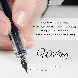 These fountain pens are designed to have a large capacity and last longer. The ink dries quickly and reliably without smudging the paper.
