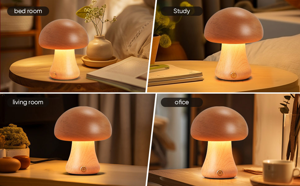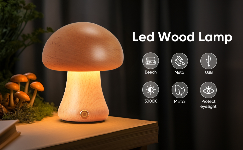 ✔️MADE OF HIGH-QUALITY BEECH WOOD: natural wood grain, fine and smooth texture. Safe and environmentally friendly, suitable for children.The unique mushroom shape is round and cute, and it is a good decoration even when the lights are turned off.
